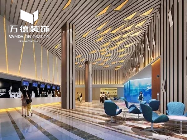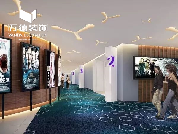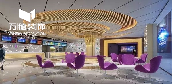 明快活泼的浅色弧线以其轻柔、优雅、婉转、流畅的个性,趋向展现出一股旋律式的气韵贯穿其中,在视觉空间中谱出动人的旋律,恰到好处的演绎出电影院所要表达的柔美内涵,产生一种愉悦感。